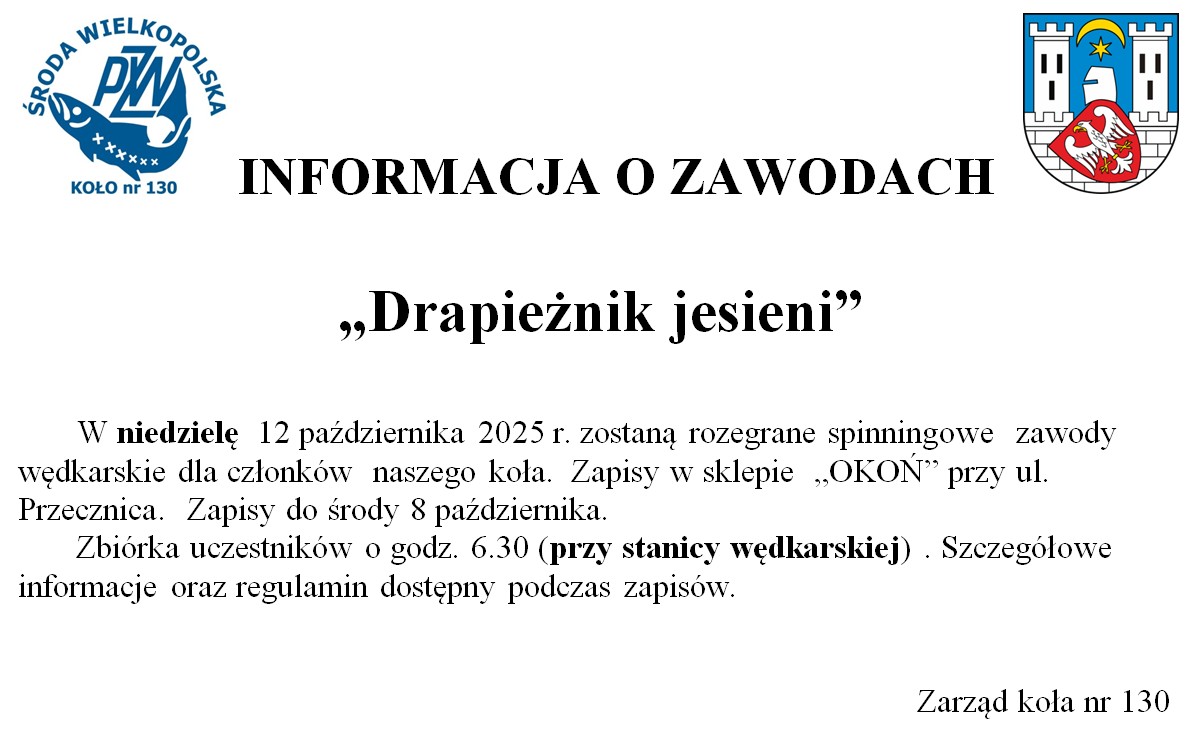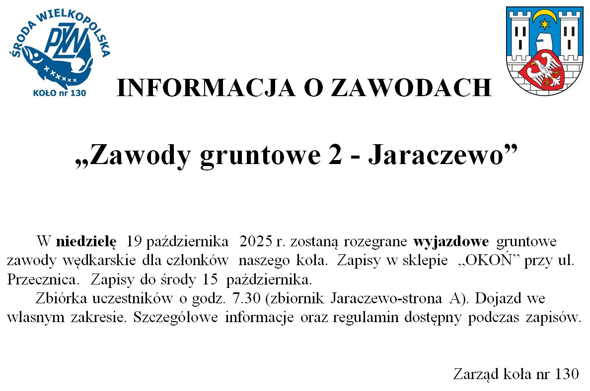 W niedzielę 19 października 2025 roku odbyły się jesienne zawody gruntowe dla członków średzkiego koła. Były to zawody wyjazdowe na zbiorniku Jaraczewo.