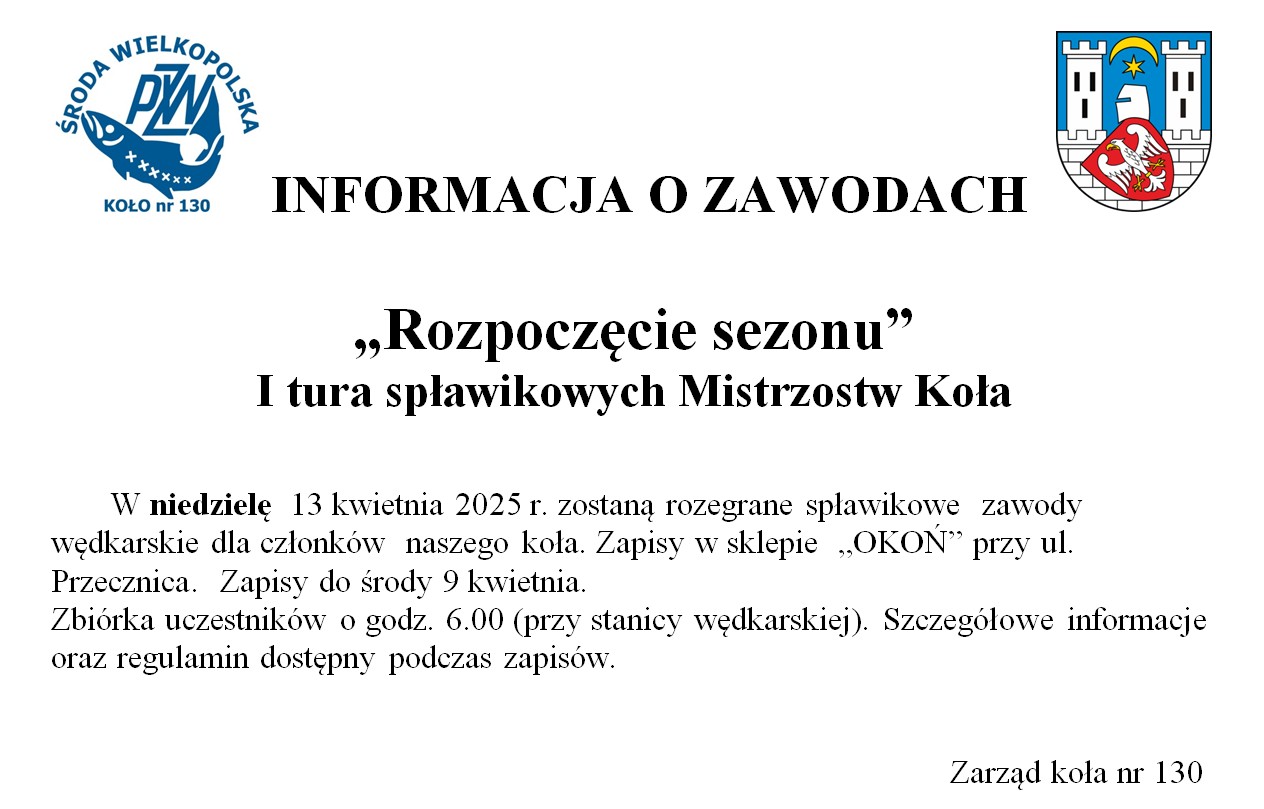W niedzielą 13 kwietnia odbyły się pierwsze w tym sezonie zawody wędkarskie dla członków średzkiego koła, była to pierwsza tura