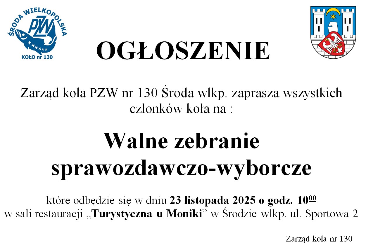 UWAGA WĘDKARZE!!! dodano: 06-01-2023 przez: ban W niedzielę 11.12.2022 w siedzibie Spółdzielni Mieszkaniowej odbyło się Walne Zebranie Sprawozdawcze członków koła PZW nr 130 Środa Miasto.
