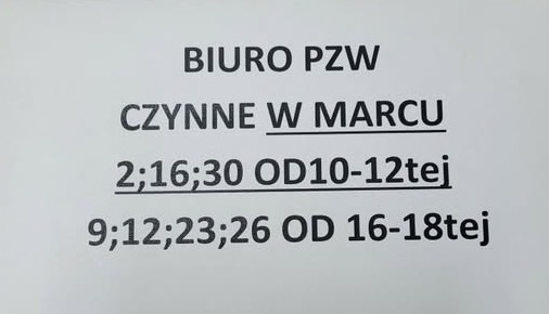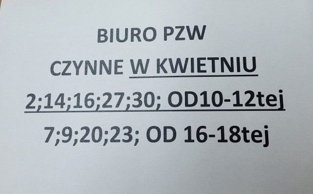 Informujemy że biuro koła będzie otwarte w następujące dni: