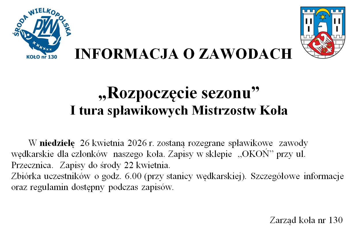 dodano: 06-03-2023 przez: ban Zawody dla członków koła PZW 130 Środa wlkp: dodano: 02-02-2023 przez: ban